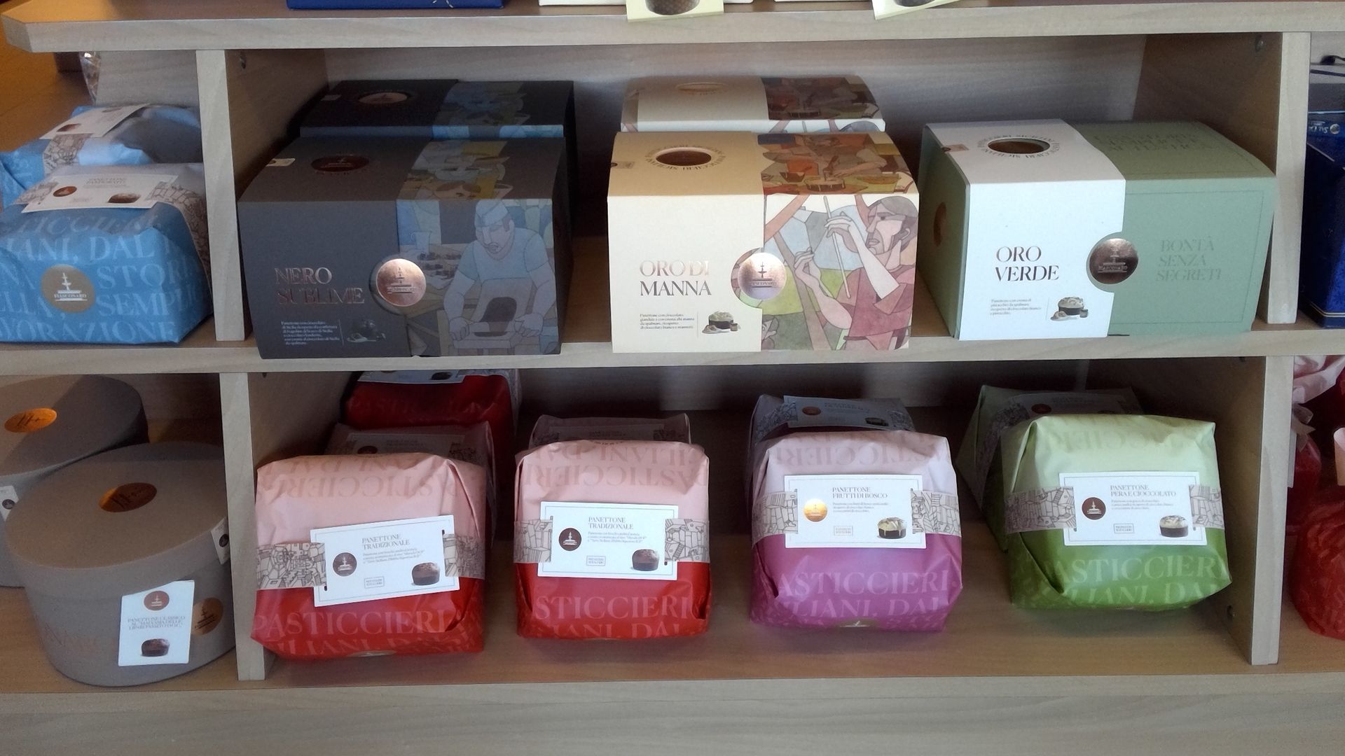 classico, senza canditi, all'olio d’oliva, olio d'oliva e cioccolato, al cioccolato senza glassa, con mela e cannella, pere e cioccolato, caffè e cioccolato, ai marroni, pandoro classico, strucà all'arancia, all'arancia e cioccolato, pera e cioccolato.