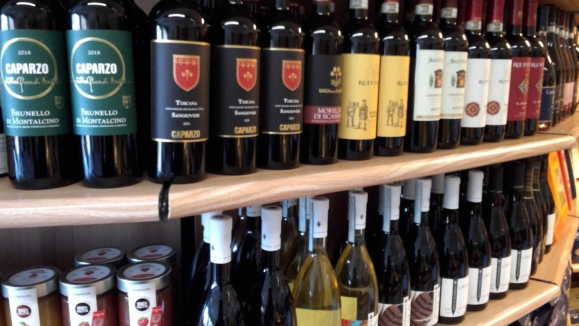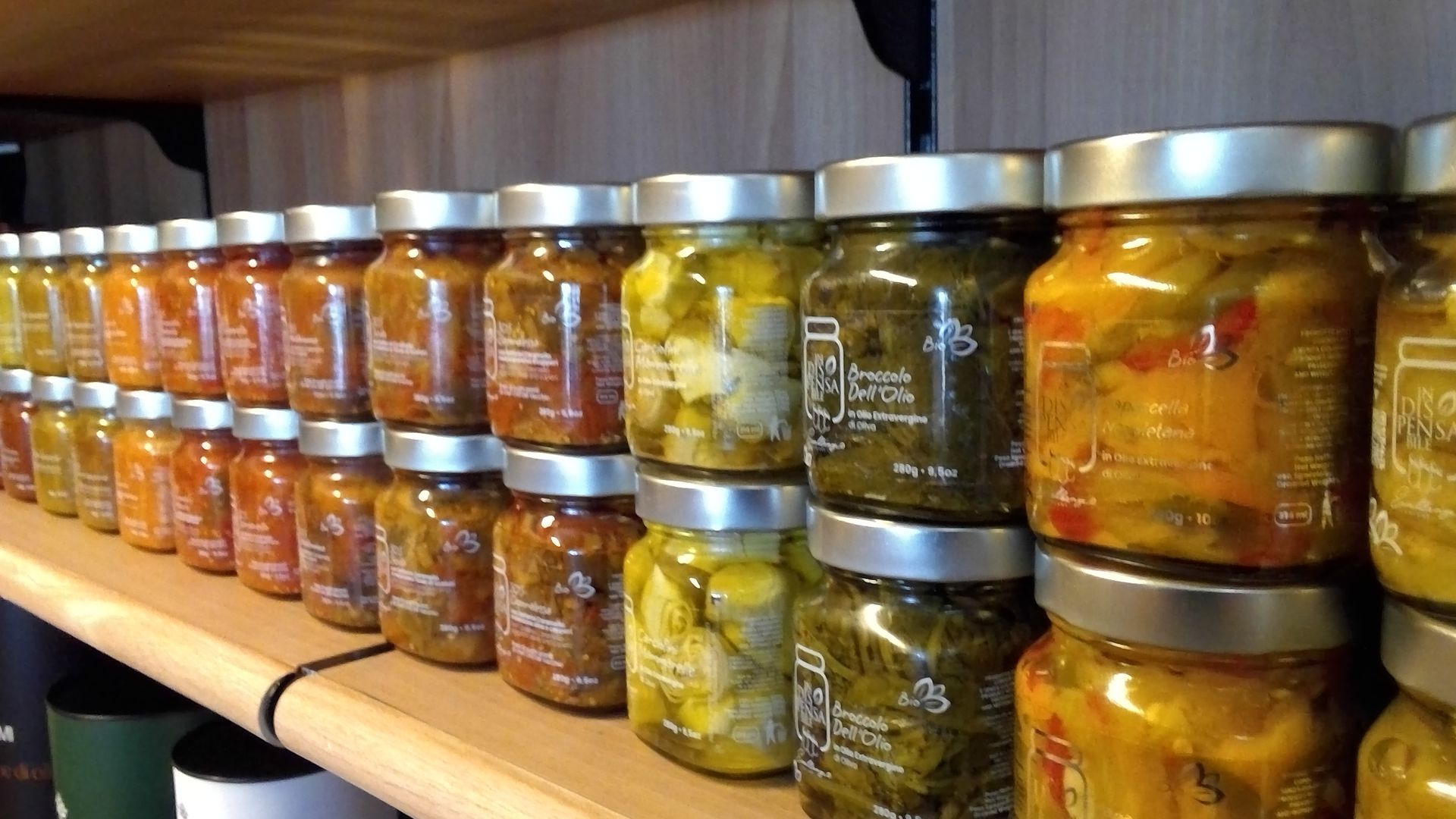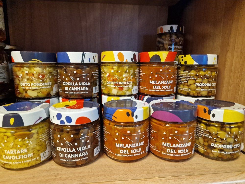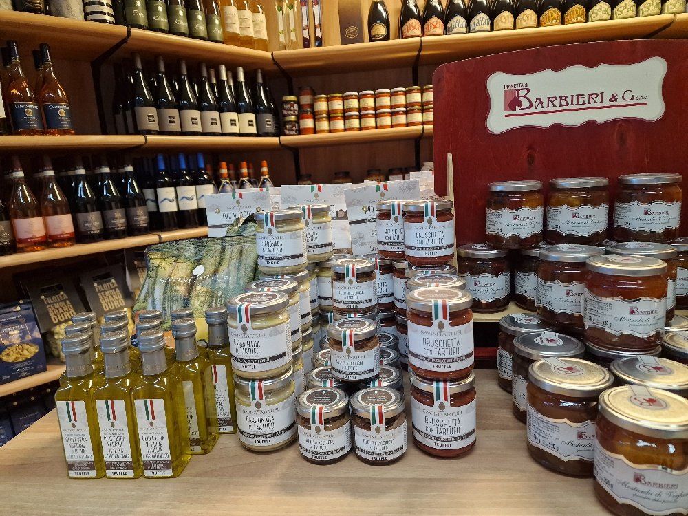 come dolci, marmellate, vini, pasta, olio, mozzarella di bufala e cioccolato.